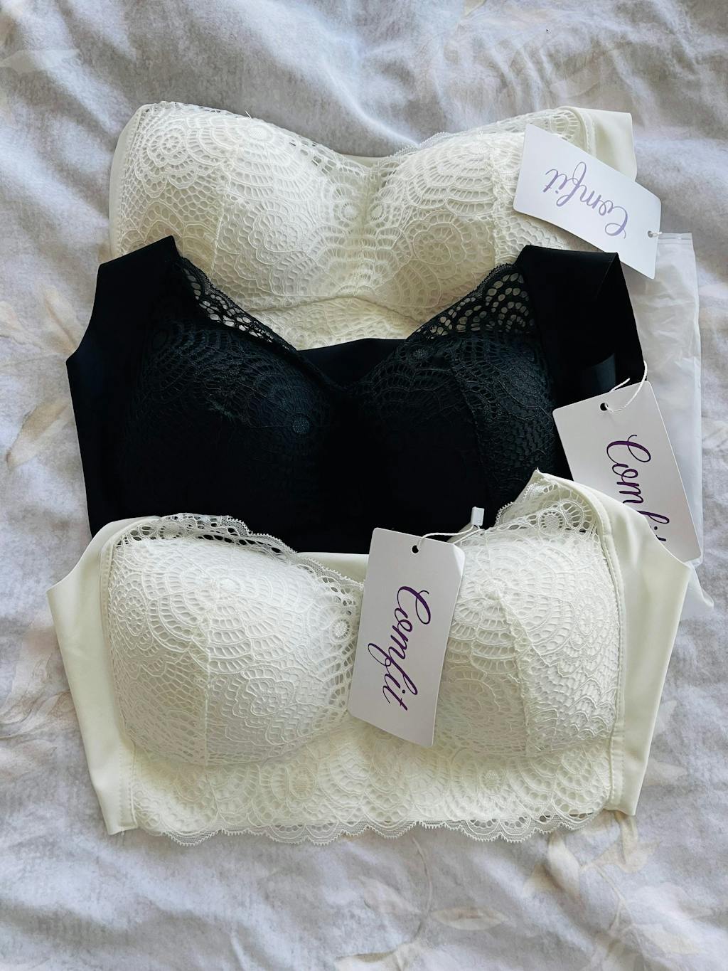 Vandaag heb ik de 3 bh’s binnen gekregen, ik heb normaal 85c/ d en ik heb de L besteld.